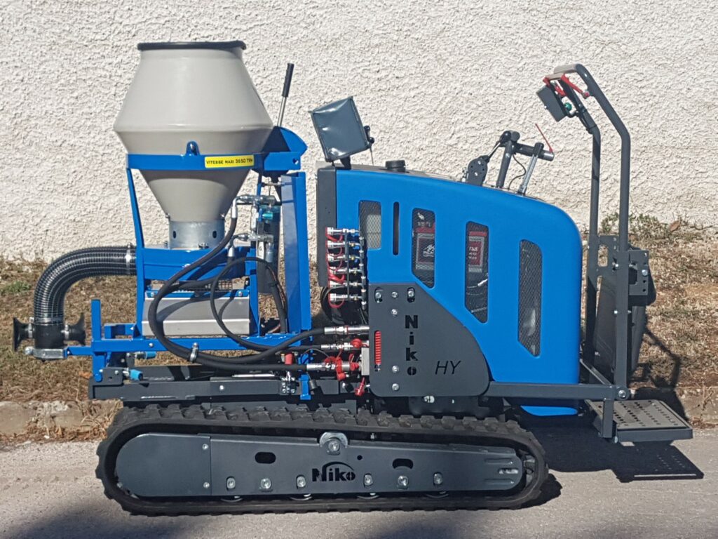 La compacité de la MTH 1002 constitue également un véritable atout. La machine a été pensée pour être montée sur des porteurs adaptés aux réalités viticoles, y compris sur chenillard de faible puissance, avec des fixations prévues pour certains modèles NIKO 38/2010 et 40/2010. Sa maniabilité en fait une solution cohérente pour les vignes étroites, les manœuvres en bout de rang ainsi que les configurations plus contraignantes que nous rencontrons régulièrement en Côte de Beaune, dans le Mâconnais, le Beaujolais ou le Sancerrois. Avant l’achat, nous pouvons valider avec vous le montage, le porteur et le niveau de réglage attendu, afin que la machine soit correctement configurée dès sa mise en route.
